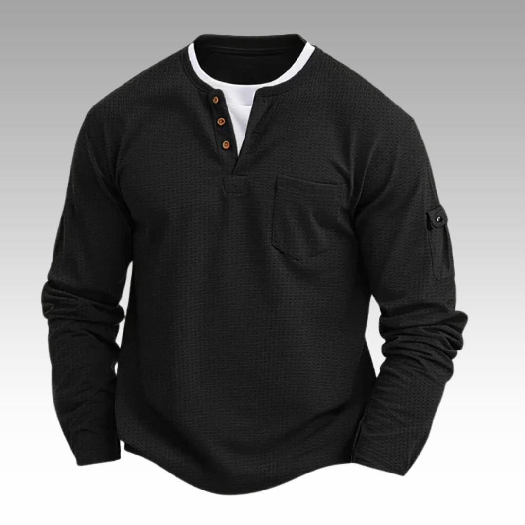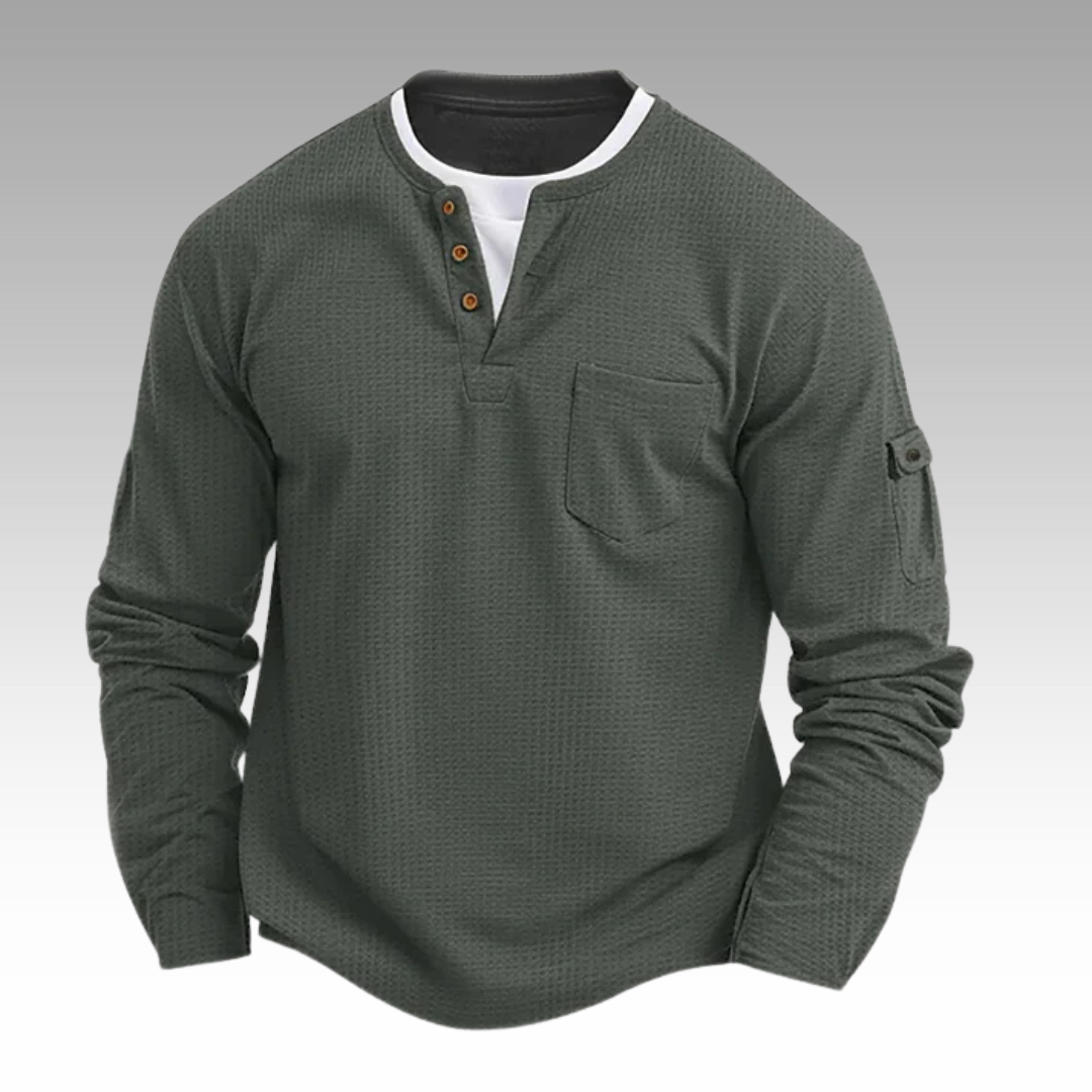 Tillverkad i en förstklassig bomullsblandning med diskret vaffelstruktur – ger precis rätt mängd värme och ventilation. Perfekt för friska höstmorgnar eller lugna dagar inomhus.